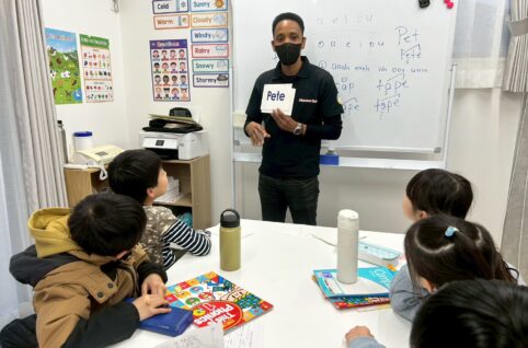 ホワイトボードの前で先生がカードを見せます。 “Pete.” そう言われて、子ども達はカードをじっと見つめます。 「えっと…読めるかな?」 そんな空気が流れたあと、 “P…e…t…e… Pete!” ...