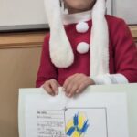 また、冬休みの思い出を発表したクラスでは、「I went to my grandma’s house.」「I played with my cousins.」など、帰省した話や家族で出かけた出来事を紹介しました。クリスマスをテーマにしたクラスでは、サンタさんへのお手紙を英語で書き、「Dear Santa, I want a new game.」と発表する姿も見られました。