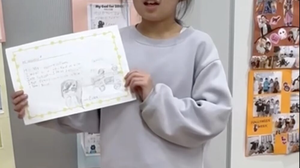 2月のレッスンでは、子どもたちが英語で発表する「プレゼンテーション」に挑戦しました。クラスごとにテーマがあり、それぞれ自分の言葉で英語を使って伝える練習をしました。