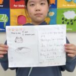 あるクラスでは「ペット」がテーマ。実際に飼っているペットについて紹介する子や、「I want a dog.」など、将来飼ってみたいドリームペットを発表する子もいました。好きな理由や特徴を英語で伝えながら、みんなとても楽しそうに話していました。